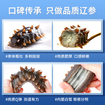 辽参 大连即食海参,采用螺旋冷冻技术,拒绝传统冷冻耗时长、营养流失大,升级螺旋冷冻海参,鲜度高、口感佳,充分锁住辽参营养。其拥有4-6排刺,粗壮挺拔;肉质肥厚,口感鲜嫩,Q弹爽滑;内筋粗实,干净完整,色泽均匀。规格:500g 9-12只/袋。