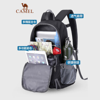 CAMEL 骆驼 A9W3C3135 男女款徒步包,韧实耐磨,质地精良,阻隔水滴泼溅,不担心突发小雨天气。采用分区域海绵网垫设计,减少背面与包身的接触,贴背处中间形成空气槽,促进空气流通,利于散热。30L大容量,便捷储物。