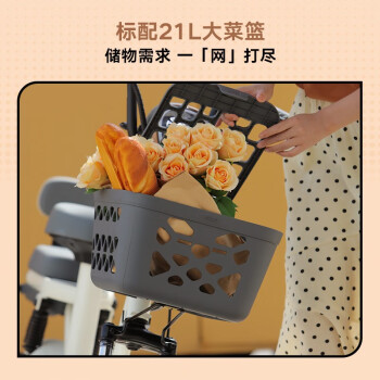 高弹坐垫,舒适柔软。约720mm坐高+9kg轻巧车架,随时出行无负担。一体式简约仪表显示,剩余续航心里有数。前储物篮,座标配加宽脚踏与靠背。全包裹式挡泥板,赴约之路不再泥泞,让350W电机载着好心情全速前进。
