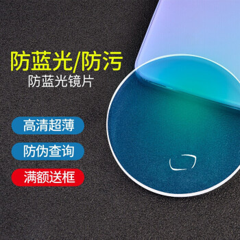 凯米1.74U6防蓝光镜片(可配近视100-1200,散光50-200;近视1225-1500,无散光),U6膜层(绿膜):创新防UV镜片,防紫外线性能(UV400)可达99%,另可以减少部分有害蓝光。