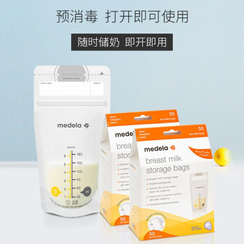 Medela 美德乐 母乳储存袋储奶袋 50片,采用PP材质,瑞士原装进口,双层壁设计,可长期安全的储存母乳,预先灭菌,小巧紧凑,与奶瓶相比占空间少。容量180ml装。
