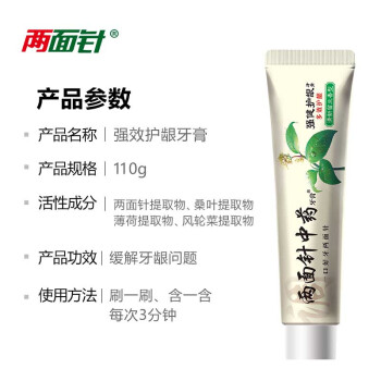 强效护龈牙膏含有两面针提取物、风轮菜提取物、桑叶提取物、薄荷提取物,能够缓解牙龈出血、牙龈肿痛、清新口气。养龈固齿牙膏含有两面针提取物、风轮菜提取物、骨碎提取物、生地黄提取物,能够舒缓牙龈出血、红肿、预防牙龈萎缩。
