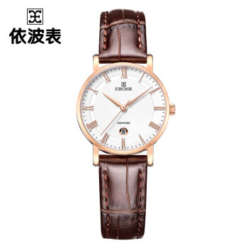依波(EBOHR)推出的这款29毫米腕表,搭载石英机芯,走时稳定。具有30米防水性能,满足日常防水需求。采用人工合成蓝宝石表镜,耐磨损且通透性好,读时清晰。圆形表盘配有罗马数字时标和金色刀形指针,简约大气。