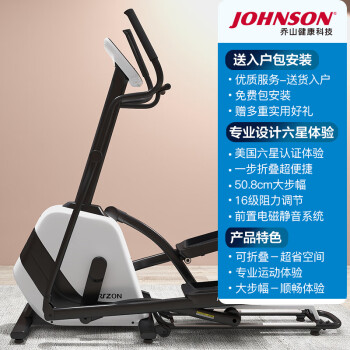 JOHNSON 乔山 ANDES 3 家用可折叠太空漫步机,采用前置飞轮设计,于是提供了更大更舒适的运动步幅,无顿挫感,主关节承设计,运行更顺畅静音搭配多连杆式运行系统,带来更流畅稳定的体验。