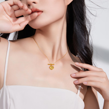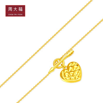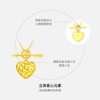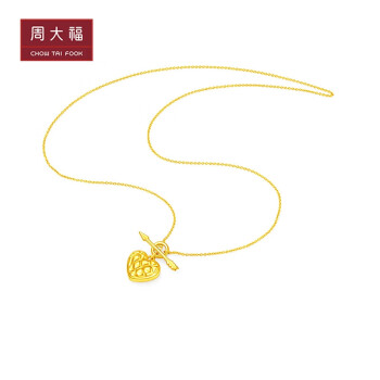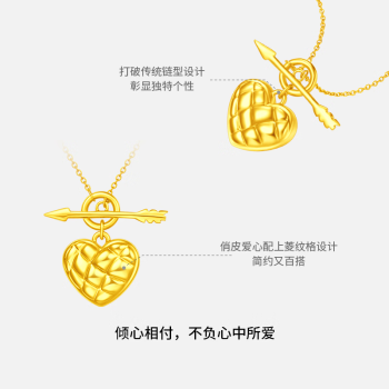 CHOW TAI FOOK 周大福 足金爱心项链,俏皮爱心配上菱纹格设计,简约又百搭,优雅又时尚,打破传统黄金项链设计思维,彰显独特个性,背部光面设计,让佩戴更舒适,让美丽无处可逃。