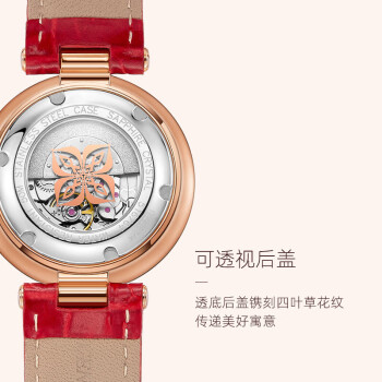 ROSSINI 罗西尼 典美系列 女士机械手表 516764G01C ,锆石点缀四叶纹,优雅如花般绽放,轻奢玫瑰金巧衬肤色,每一颗错钻都是手工镶嵌,时刻衬托好气色,360°璀璨动人。PVD电镀工艺,色泽持久魅力十足。人工蓝宝石玻璃表镜,进口机械机芯,表盘直径34mm,50米生活防水,满足日常防水需求,雨天也放心佩戴。