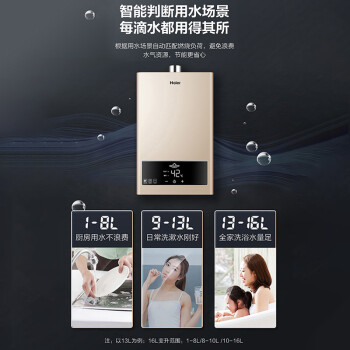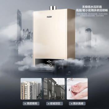 大屏显示,一键选择,灵敏感应,水气双调恒温,水流量传感器,3.0智能芯片,智能分段燃烧,智能静音,双速风机,流线型管道,封闭静音燃烧室配置组合提供静音效果。