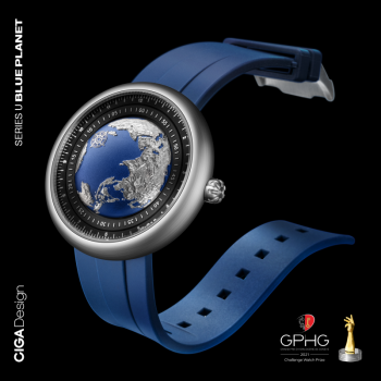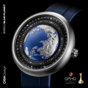 玺佳“蓝色星球”表的设计灵感源于2020年,全球疫情爆发,人类开始反思如何与地球和平相处。玺佳以“蓝色星球”为主题,融入陆地、山脉、海洋等自然元素,真实还原地球的地貌,希望方寸之间唤醒大众对于地球环境、自然万物的守护意识。对此,世界绿色设计(WGDO)组织主席石定寰给予高度肯定和认可,“创新设计是产业变革的先导,绿色设计代表先进生产力的未来,CIGA design玺佳此次获奖作品高度契合全球变暖局势下,绿色设计传达出的环保理念,呼吁人类共同珍爱地球。”