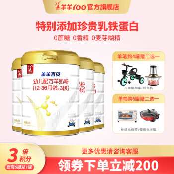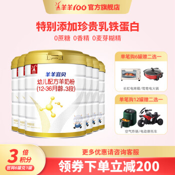 当前的位置: 首页 > 今日值得买 > 羊羊100 【积分六罐可兑1罐】羊羊宜贝婴儿羊奶粉3段国产婴幼儿800g 新金钻3段800g