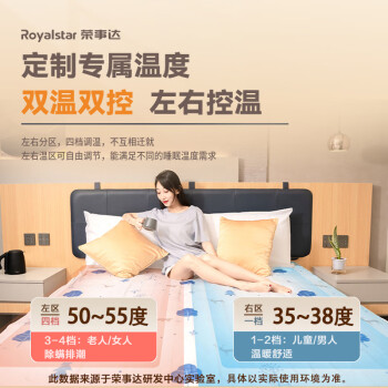 新一代智能除螨定时电热毯,左右分区,四挡调温,左右温区可自由调节,玩足不同睡眠温度需求。精选柔软面料,柔软舒适,面料安全健康,防潮透气。高温防潮,一件除螨。遇水不漏电,高温断电过热保护,安全用着才安心。