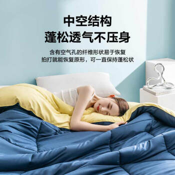 7孔中空纤维,蓄热隔温,当然更保暖,一根纤维含有七个空气孔,使之富含空气,达到保温效果。含有空气孔的纤维形状易于恢复,拍打就能恢复原形,可一直保持蓬松状。采用超柔亲肤磨毛面料,质地细腻顺滑,感受得到的柔软细腻。