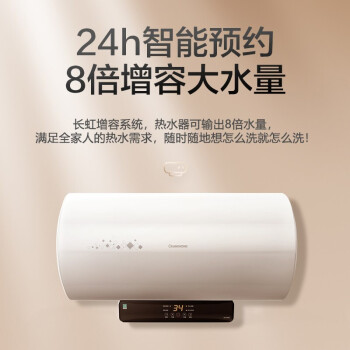这款CHANGHONG 长虹 E5系列 储水式电热水器,拥有50L、60L、80L三个规格容量,3000W速热功率加热快速,使用热水无需过久等待,一级能效,高效节能,省电省钱;8倍增容大水量,满足全家人接力洗的沐浴需求,杜绝出现洗澡洗到一半没有热水的尴尬情况;内置防电墙,双重断电防护,6重全方位防护,使用更加安全可靠,适合守护你的家人;ECO中温保温功能,长效保温设计,避免重复加热,设计更贴心;支持红外遥控,24小时智能预约功能,使用更加方便随心,让沐浴变得更简单。