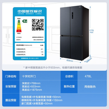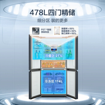 美的(Midea)这款型号为BCD-478WSPZM(E)d的十字对开门冰箱,其属于净味系列,采用了十字对开门设计,内膛容量高达478L升,温湿度由档位调节升级为触控面板调节,电脑控温更准确;增加温湿度传感器,对箱内温湿度感知更精准;温湿度调节二合一,同时调节,食材更保鲜。99%主动除菌除病毒净化给家人健康多一层保护超磁感离子电场释放大量活性离子,主动歼火细菌病毒,除菌率高达99%,除病毒高达99%,时刻守护全家人的健康。