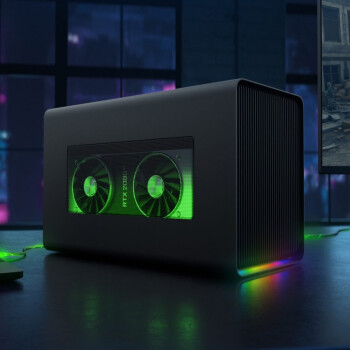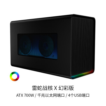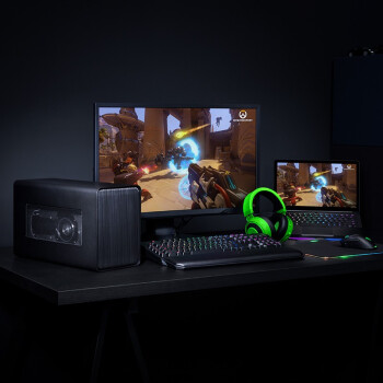 通过战核X显卡扩展坞,可以瞬间让笔记本进化为桌面游戏主机,即插即用,无需重启,广泛支持主流显卡(GTX10系列、RTX20系列、RX系列、Quadro系列显卡),Thunderbolt雷电3接口,供电线路与贷款双满足,内置700W电源,不仅可为显卡供电,还可通过USB-C为笔电提供100W的功率输出。铝制外壳协助散热,支持雷蛇自家的CHROMA炫彩灯光系统。尺寸:168*374*230mm,重量:6.91kg。附带接口:4个USB3.1 端口。