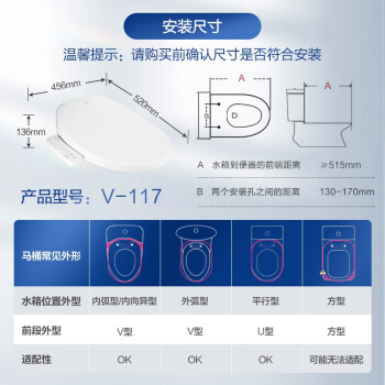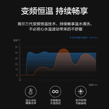 此款Haier 海尔 V-117 智能马桶盖,为即热式产品。并采用ECO节能。冲洗方面,空气混合出水,洗涤更顺畅。并设有妇洗独立喷嘴,支持前后移动清晰。座圈曲面自然流畅,并支持5档温度调节。并采用ASA材质盖板,相比一般ABS而言,更保持长效亮泽,使用寿命长。