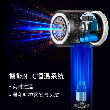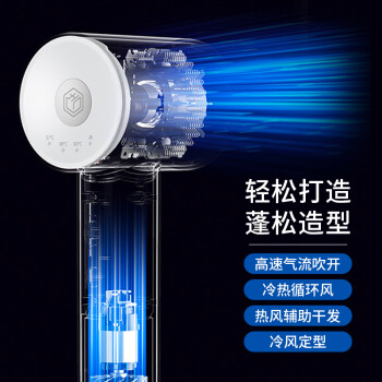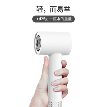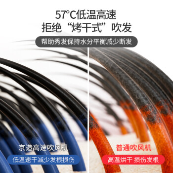 京东京造 JZCF05 电吹风,配备13片镁风叶,搭载10万转高速无刷电机,转速是普通吹风机的5倍。大风量,席卷而来。采用智能温控技术。深层呵护秀发,57度恒温输出柔和气流,风温降低,拒绝被烤。京造黑科技 Multihole降噪模块,有效均衡噪音,分贝低至66dBA左右,柔和风声,让耳朵更舒适。智能感知,调节出风口温度,确保风温稳定,避免发丝过热损伤。5秒热风5秒冷风,反复循环,营造出自然风的柔和,减少吹发过程中头发长期受热损伤。