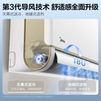美的 旋耀系列 KFR-50GW/N8MXA3 壁挂式空调,采用垂直0°送风设计,可以让暖流从足底开始温暖全身,采用创新旋转全域风道科技,让风道可以180°旋转,实现大广角全域送风,具备850m3/h大循环风量,9米远距离送风,同时采用一体顺滑加长风道降噪技术,降低噪音干扰;支持乐扣式拆洗,旋转风道和导风叶合为一体,可拆开清洗,另外通过采用高密度滤网、至臻金亲水翅片、外机反转除尘实现多重洁净。