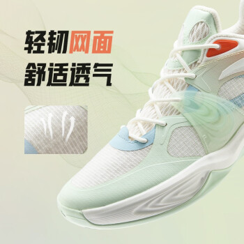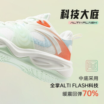 ANTA 安踏 风洞3代 男款实战篮球鞋 112231605,中底采用全掌ALTI FLASH科技,缓震回弹70%,带来柔软舒适的上脚体验,侧向TPU连接中底模块,通过鞋绳绑缚, 稳固支撑脚掌,提升包裹感与支撑性,增强运动防侧翻功能,鞋面由高强度纱线编织而成,轻薄透气,巧妙利,用不规则风洞创意与鞋面结合,兼顾支撑与透气,开启双足干爽模式,助力外场实战。采用特殊配方的耐磨橡胶大底,分区不同触底面积设计,提升抓地性能,助力快速启动,贯穿对手防线。