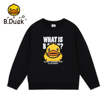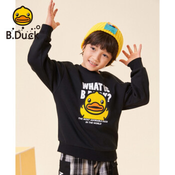 B.Duck 儿童圆领卫衣,亲肤加绒内里,冬季内搭不惧寒冷。舒适卫衣布,保暖亲肤,经典圆领套头,穿搭方便有型,字母和鸭鸭卡通印花,增添视觉层次感。