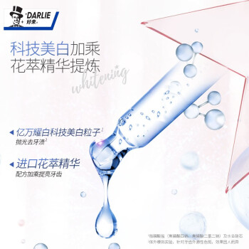 这款DARLIE 黑人 星耀白系列星耀白牙膏,分别有日本晚樱精华、瑞士雪绒花精华、保加利亚玫瑰精华三种类型。蕴含亿万耀白科技美白粒子(指磷酸盐和水合硅石),能抛光去渍,抵御色斑;还添加了进口花萃精华,配方有助牙齿闪亮耀白;进口星星闪片,少女心爆棚粉嫩膏体不仅能够美白牙齿,还能够提亮牙齿光泽的效果。