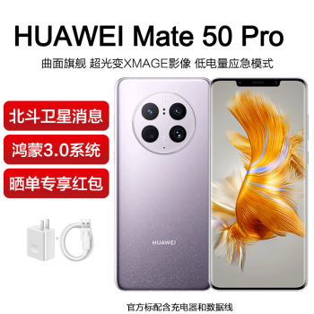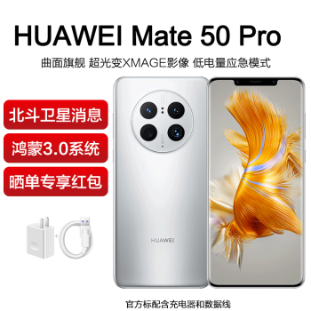 华为 Mate 50 Pro 整机为3D曲面设计,巴黎饰钉设计,更显高端优雅,有冰霜银、耀金黑、流光紫三款玻璃版本以及正面采用昆仑玻璃面板的昆仑破晓,昆仑霞光两款素皮版本,昆仑玻璃面板,整机耐摔能力得到更好的提升,获得瑞士SGS五星抗跌耐摔权威认证,整机重205g。