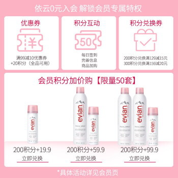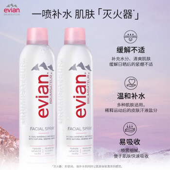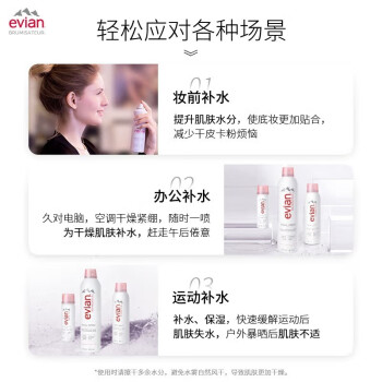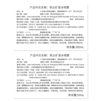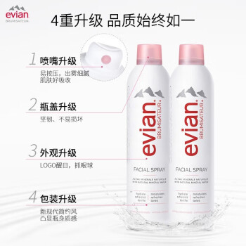 品牌: Evian/依云 化妆水/爽肤水单品: 天然矿泉喷雾 产地: 法国 功效: 补水 保湿 化妆品净含量: 300ml 400ml 规格类型: 正常规格 是否为特殊用途化妆品: 否