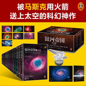 套装为礼盒珍藏版,包含基地七部曲+机器人五部曲+帝国三部曲,以及银河战舰灯+7张星云卡片+纪念版笔记本+银河帝国行政区海报。