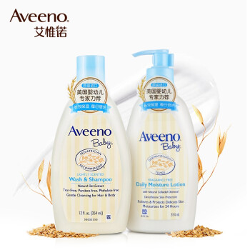 艾惟诺(Aveeno)推出的这款婴儿洗护套装,内含润肤乳和洗发沐浴露,均添加燕麦精华,能帮助维持肌肤表面弱酸性pH平衡,有效舒缓修护肌肤;甘油能在皮表形成一层保护膜,防止水分流失。泡沫少且细腻,易于冲洗。