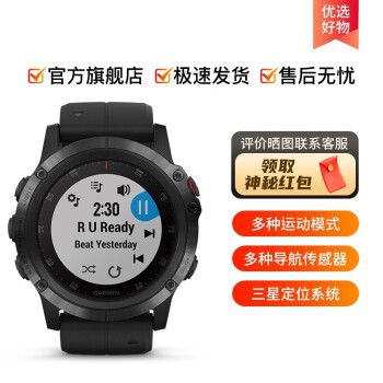 此款GARMIN 佳明 fenix5X Plus 运动智能,附带三星定位系统、血氧浓度、内置地图、多种导航传感器、Garmin Pay、离线音乐、多运动模式、智能连接等超多功能,选用高端手柄常用的ADLC表面镀层,以碳结构为主,硬度超高,但摩擦系数却小,更加适合户外运动。