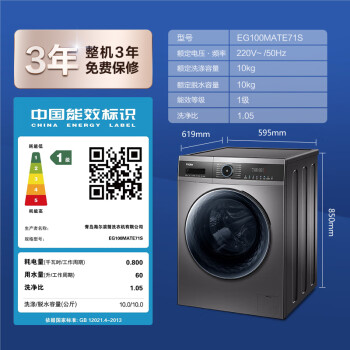 海尔(Haier)这款型号为EG100MATE71S的滚筒洗衣机,洗涤容量10公斤,搭载了直驱变频电机,可提供强劲动力(每分钟转速可达1200转)的同时对于筒转动角度控制更加精准,让洗涤更加高效。洗衣机具备多达17种洗涤程序,这其中还包括可洗真丝的“摇篮柔洗”,在“洗地机智能投放”的助力下,实现高效洗涤解放双手。此外,为避免出现二次污染,特意采用了ABT双喷淋+AMT抗霉菌脚垫+高温筒自清洁的设计,可有效避免潮湿生霉的现象。