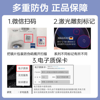 蔡司单光镜片特点高阿贝数赋予镜片良好的光学性能,给您带来清晰的视觉,生动的色彩。激光雕刻防伪非球面设计蔡司非球面设计,边缘像差大幅度降低;视物真实,眼部自然美观。