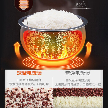苏泊尔(SUPOR)这款型号为SF50FC973的电饭煲,配备球釜内胆,内胆表面均匀分布蓝钻颗粒,米饭不粘锅,更耐磨,使用寿命更长。微压技术,后置鸭嘴式出气口,减少蒸汽流出,保持煲内微压环境。支持24小时智能预约。16大功能菜单, 智能温控曲线,精控火候。新晋网红卤肉/炖肉功能,免看火,一锅端的懒人烹。