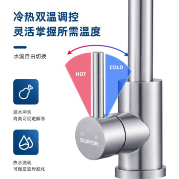 当前的位置: 首页 > 今日值得买 > 苏泊尔(SUPOR) 304不锈钢厨房水龙头健康洗菜盆洗碗盆龙头冷热水龙头 360°旋转 枪灰龙头-配进水管