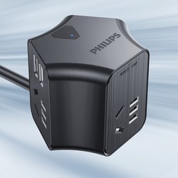 大幅度减少等待时间,多设备充电不在话下。4USB+3AC孔位组合,USB输出5V=3.1A(单个USB输出不超过2.4A)。尺寸:65x65x61mm