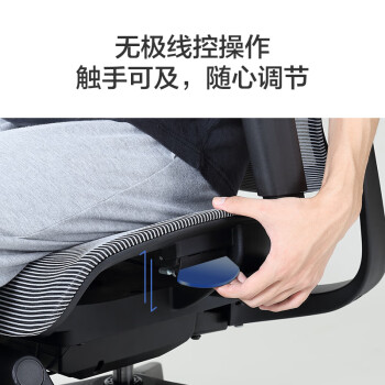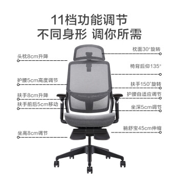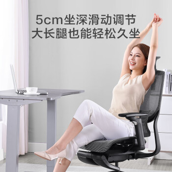 腰托5cm升降4档可调,实现腰部精准承托,根据后仰力度自适应前后调节,提供舒适支撑。自适应落座重量,动态调节靠背承托力度。马鞍形坐垫设计,减少腿膝处压迫,久坐腿不麻。线控集成操作系统,轻松调节椅背后仰 坐垫升降以及坐垫滑动功能。