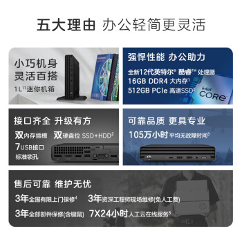 配置方面,处理器采用 12 代 i5-1235U 10核心12线程,CPU主频为1.3GHz,睿频可达4.4GHz;配置英特尔 Xe 显卡;内存采用 16GB DDR4 3200MHz 双通道内存,硬盘采用 512GB PCIe NVMe 高速固态硬盘。双硬盘插槽,方便以后拓展升级。接口方面:配备包含千兆有线网络接口、DP1.4、HDMl、3.5mm耳机、Type-C 3.2Gen2在内的多样接口,还支持先进WiFi6和蓝牙5.2。