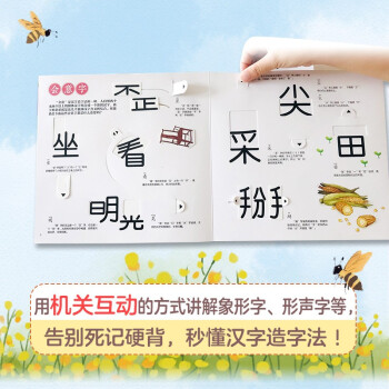 《汉字真好玩机关书(上)(下)》是为处于识字敏感期的幼儿园中大班以及刚上小学的小朋友精心设计的一套汉字学习机关书。它*的特点是以部编版一年级语文教材中的500多个基础汉字为依托,精心设计了130余个立体互动机关,通过推一推、拉一拉、翻一翻、 转一转等多种有趣好玩的互动形式,让孩子在轻松愉快的游戏中建立对中国汉字的兴趣,多方面地了解汉字的结构以及字形的演化。
