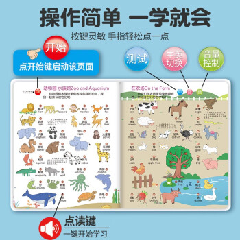 丰富的亲子互动内容,家长和孩子一起学习,简单的角色对话,家长可适当对内容进行说明,有助于孩子更好地理解和记忆。近1000个发声点,中英文双语切换,26个情景主题。