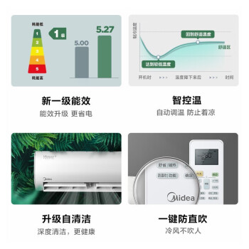 美的 冷静星Ⅱ采用R32新冷媒,整机采用了直流变频技术,具有光线识别检测功能,根据室内光线变化调节风速,送风可无级调速,散热片自动清洁,支持除湿功能,配备高密度滤网以及冷触媒滤网,让室内空气保持清洁,室外机叶片反向转动功能,能够将灰尘甩离叶片。