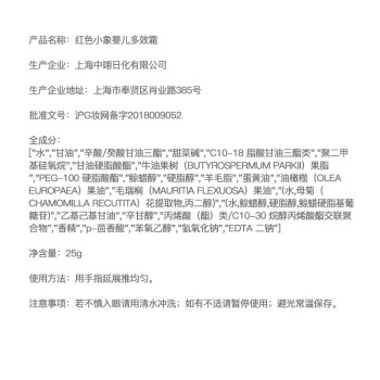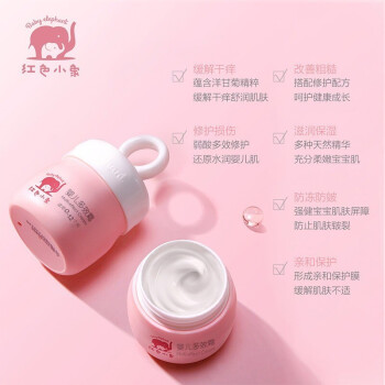 红色小象是国内专注高标准母婴护理品牌,给准妈妈们、敏感肌肤人群以及婴幼儿专属呵护。此款红色小象婴儿多效霜 采用弱酸性营养滋润配方,添加果粹呵护成分,适合儿童面部及全身肌肤,周全保护,尽情释放儿童天性。规格:50g
