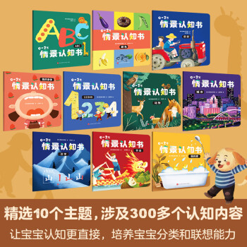 这是一套专为0~2岁宝宝打造的情景认知书,帮助家长把握0~2岁基础认知关键期,这套书涵盖了数字、汉字、abc、颜色、动物、我的身体、我的家、城市、农村、节日10个认知主题,除了有数字、ABC、颜色这类无国界的认知内容,更增加了简单的汉字、中国的传统节日、常见的生活用品、中式的农村与城市的认知,可以说是非常接地气,在保护孩子的好奇心,激发想象力的同时,让孩子学会在生活中对照着身边的场景、事物进行认知学习,不仅加深印象,而且能够活学活用。全套超过300多个认知内容,满足宝宝多领域发展的需求。这套书的独特之处在于,将知识融入有趣的场景中,给孩子建立准确认知的基础上,添加丰富的细节,再结合音频伴读,即实用又有趣,让宝宝加深对自我和世界的认识,开启奇妙的认知之旅,开拓更广阔的视野。每本书都配有音频,手机扫码就能听,非常方便。都是真人发声,让宝宝感到浓浓的亲切感。