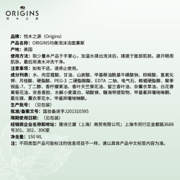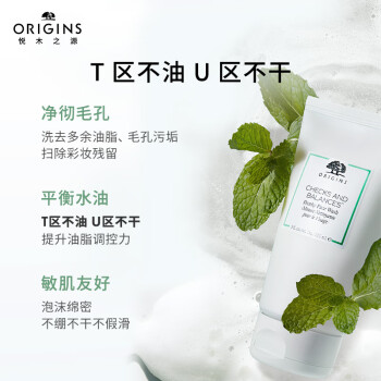 Origins悦木之源又叫品木宣言,是雅诗兰黛旗下较高端的高效天然护肤及化妆品牌。其产品以不含香料,100%取自纯天然植物成分而受到欢迎。这款均衡泡沫洁面慕斯,全肤质适用,添加了水解小麦蛋白成分,具有保湿、柔软、细滑肌肤的功效,更增添了佛手柑、绿薄荷及薰衣草精油,愉悦身心,令肌肤不紧绷。干皮也可以放心使用。面膜富含碧玺石成分,能有效清除污垢、油脂,令肌肤洁净清爽,特别添加了深海阔叶巨藻,可以提升肌肤油脂调控李,修护干燥肌肤,维持肌肤水油平衡。泡沫细腻又温和,不会给肌肤造成负担。