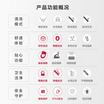 此款智能马桶盖,主打一秒速热、恒温畅洗,产品采用日本原装进口PTC陶瓷加热器,冷水一入热水即出,可持续供应温水;每次如厕前喷嘴自动清洁,便圈3D曲面舒适弧度设计,提供舒适坐感同时支持智能3档调温;支持移动清洗、温水清洗、脉冲水流,盖板方便脱卸,日常清洁无压力。产品尺寸:515*470*159mm。