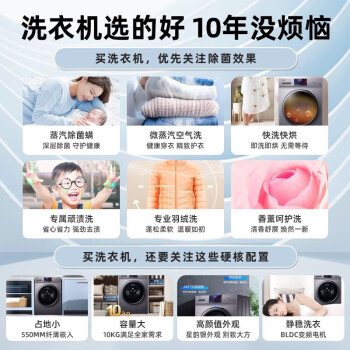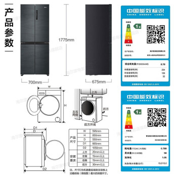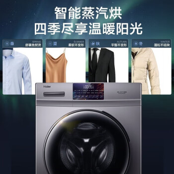 Haier 海尔 BCD-405WLHTDD5DYU1 十字对开门冰箱 405L:商品采用99.9%抗菌率面板,细腻触感加持健康呵护。银河灰色调灵感源自广袤而神秘的银河,以艺术的形式注入现实生活。675mm精巧机身可轻松融入橱柜,释放更多宽敞空间,0.47m2小面积占地,可随心摆放,家装更多选择。405L美食空间,大容量包容全家人的小心思。阻氧干湿分储,食材按需分储,湿区水润鲜活如初摘,干区爽朗干燥不返潮,每一口都饱含新鲜与营养。黄金4℃母婴专属空间,Baby成长中的洁净呵护,母婴模式下,4℃冷藏专属母乳,营养成分不易流失,另外还有零度模式,珍品模式可选,适配宝贝成才各个阶段,给妈妈和Baby长期的陪伴,助力健康成才。三档变温,根据食材的特性灵活选择不同模式,满足食材不同的储存需求,新鲜随“食”而变。DEO净味,香甜红啤梨与鲜美欧芹各守其味,有效吸附异味分子,主动祛除箱内异味,水果蔬菜只留大自然的味道,多种美味混放不串味。 Haier 海尔 EG100HB108S 洗烘一体洗衣机 10公斤:杀菌去异味,温软护衣,烘干黑科技,面面俱到。65-85摄氏度变温烘干,16M/S热状态均匀风速及时烘干。NTC智能传感器,精准控温,1秒测温100次。JIT衣干即停,防止过度烘干。采用60摄氏度蒸汽深入纤维杀灭细菌,物理方式更安心。BLDC变频电机,平稳运行不扰眠。中途添衣,漏洗衣物虽然添加。双喷淋,随漂随冲,泡沫少残留。AMT抗菌窗垫,抗菌率99%防菌抗霉。