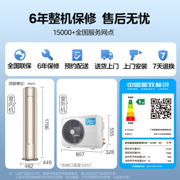 1020m3/h宽域风量 角落也能畅享清凉 突破传统左右出风的限制,升级大风口出风, 实现上下左右 环绕送风,配合大循环风量迅速平衡室内温度,凉感迅速 覆盖全屋。外机反转除尘 由内而外都洁净 外机反转自清洁,可有效清除外机内藏的灰尘污垢 保持空调出风健康清洁。美的第三代控制技术 蓝牙闪控更便捷 无需下载APPI离线也能连 通过小程序即可蓝牙闪连,调温 调风无需四处寻找遥控器,支持更多智能功能。