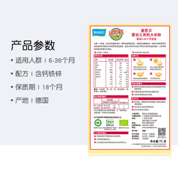 爱思贝于1985年由Ron Koss及Arnie Koss兄弟在佛蒙特开始生产有机婴儿食品,所有产品不含改造基因、不含人工添加剂、不含精制糖、不含改质淀粉、不含盐、不含防腐剂,只含有机及全谷成份,因此取得美国农业部(USDA)有机产品认证。这款德版有机米粉采用优质有机大米,不含过敏麸质,口感细腻好吃易消化,采用湿法干燥工艺,复水性强易吸收,微晶片状易冲泡,高铁优化配方,添加多种微量元素,为宝宝健康成长添活力。