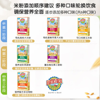 当前的位置: 首页 > 今日值得买 > 爱思贝(EARTH'S BEST)宝宝钙铁锌米糊 地球婴幼儿 高铁有机大米粉175g(辅食初添加)