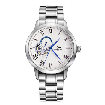 此款产品为GUANGZHOU 广州表 开芯系列 男士自动上链腕表 GMF106SS-1,白色表盘搭配品牌LOGO造型纹理,高雅而不失质感。人工合成蓝宝石镜面,烤蓝柳叶针,表壳316不锈钢。全透视底盖,开芯镂空设计,让你看到每一秒的转动。