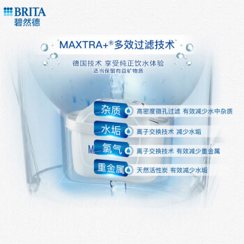 德国的Brita碧然德是过滤水系统行业的领头羊,这款Marella 金典系列滤水壶容量为3.5升,杯盖位置有滤芯更换提示屏,避免滤芯寿命到期后继续使用带来的二次污染问题。在滤芯方面,它采用新一代的BRITA MAXTRA滤芯,能过滤水中的重金属、余氯和异味,滤水量为2升,滤芯使用寿命4周/100升,适合2~3人使用。