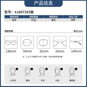 防蓝光变色,一镜多用,室内防蓝光,室外秒变太阳镜,既可以抵御有害蓝光,减缓度数的加深,在室外又秒变太阳镜,抵御紫外线的侵害,根据紫外线的强弱,镜片颜色呈现不同程度的加深,智能切换,满足您不同场合的不同需求。超轻合金+TR镜架,轻盈纤细,半框设计简约商务与轻相伴,镜腿TR材质超大弹力,大脸不夹小脸不掉。